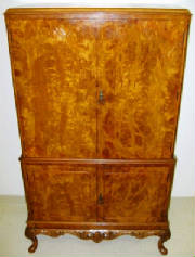 French Cocktail Cabinet of Burl Walnut with Queen Ann Legs