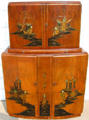 Large Cocktail Cabinet of Walnut with Inlayed Oriental Motif